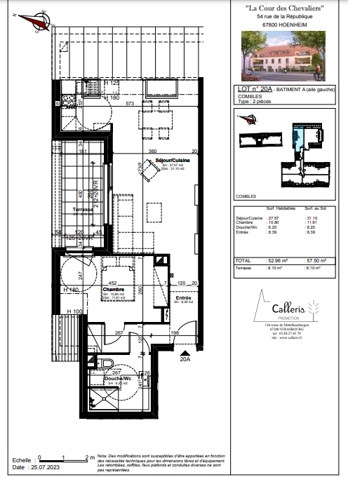 F2 - lot A20 comble de 52.76 m²